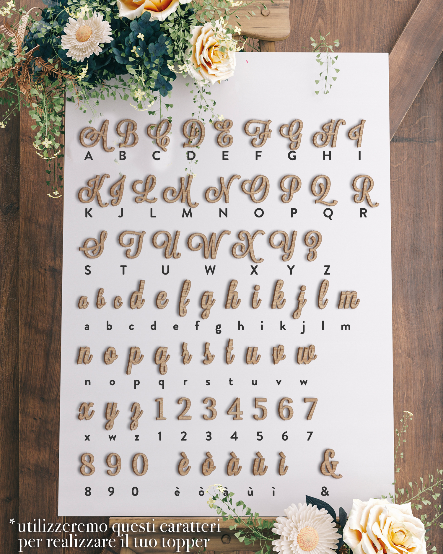 Questi cake toppers sono incisi a laser su acrilico spesso 2 mm o legno di betulla spesso 3 mm a seconda della vostra preferenza. Se non siete sicuri di che dimensione o colore scegliere il vostro cake topper, contattateci a servizioclienti@olalla.it per ricevere la nostra consulenza!