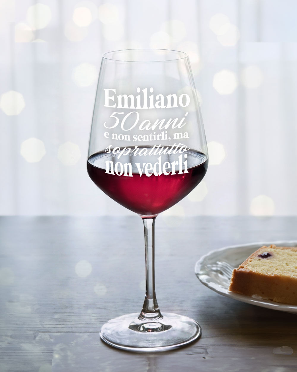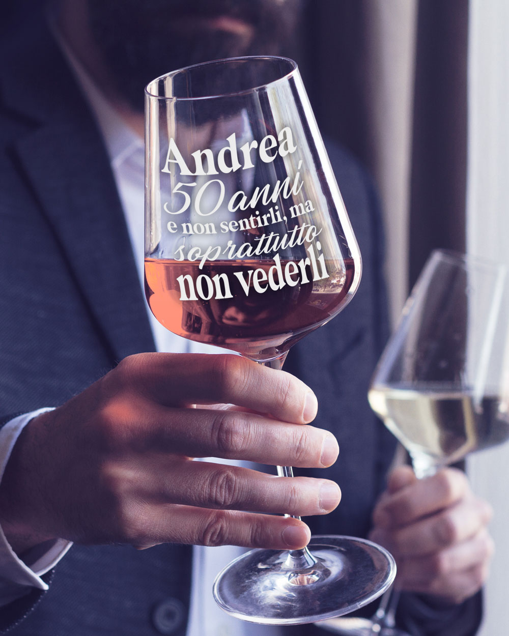 La personalizzazione è ciò che rende il nostro calice un regalo straordinariamente speciale. Immaginate la sorpresa e il sorriso di chi riceve un calice personalizzato con la stampa del proprio nome, gli anni compiuti e una frase simpatica che gioca sull’età in modo affettuoso e divertente: “Non sentirli ma soprattutto non vederli”. Un regalo originale e affettuoso, perfetto per celebrare gli “attempati” compleanni, che lascia un segno di gioia e leggerezza. Immaginate un momento speciale, un brindisi che resta impresso nella memoria non solo per l’occasione celebrata, ma anche per l’eleganza e la qualità che accompagnano quel sorso di vino. È proprio questo l’esperienza che offriamo con i nostri calici, pensati per coloro che sanno apprezzare i dettagli che fanno la differenza.