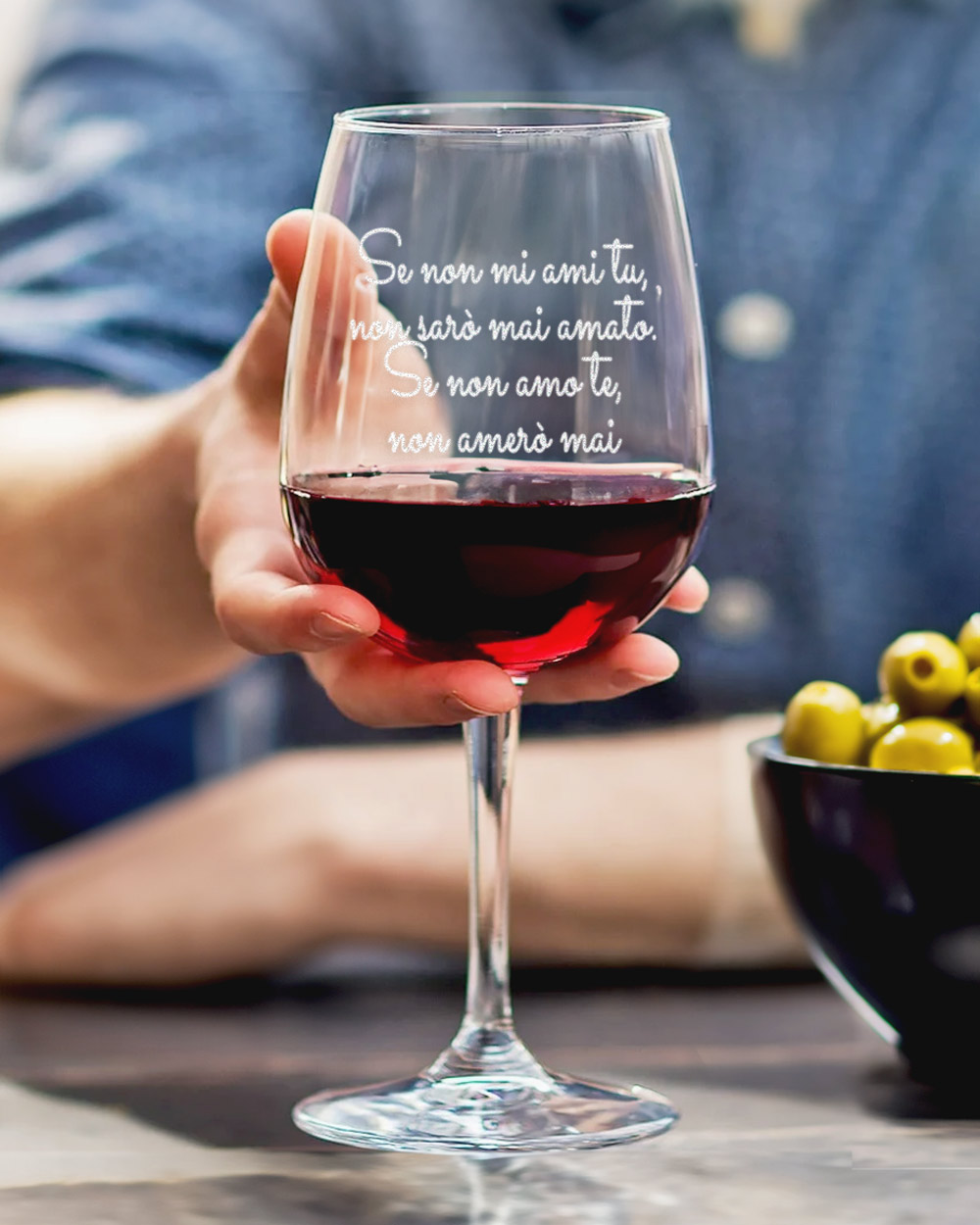 - Un Brindisi al Vostro Amore: San Valentino o l’anniversario sono occasioni speciali. E quale modo migliore per celebrarlo se non con un calice inciso con le tue parole d’amore?