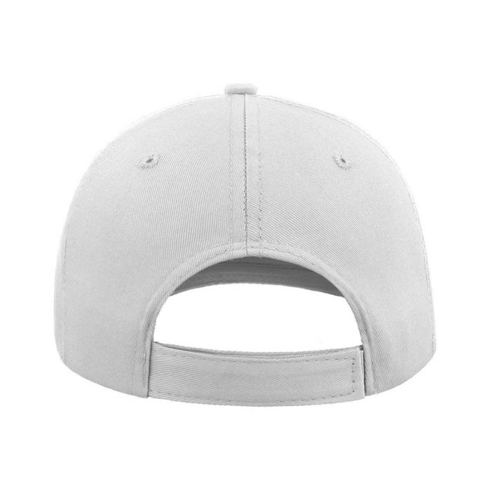 Cappellino con frontino modello baseball, taglia unica adattabile con la fascia di regolazione in velcro sul retro.