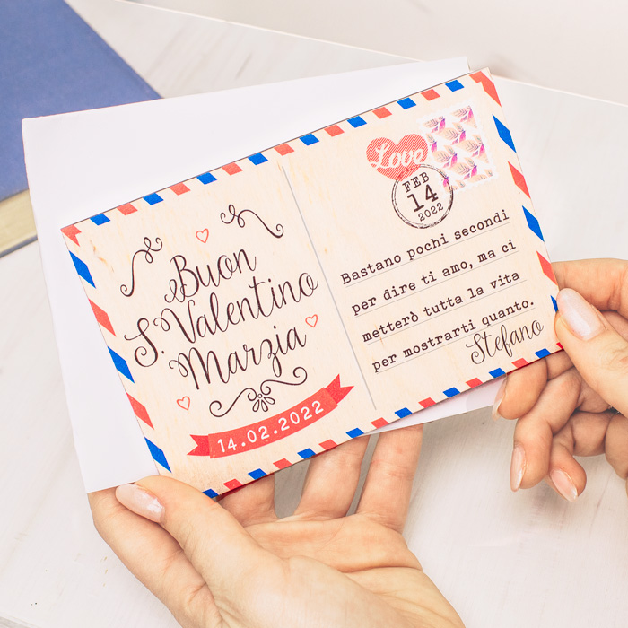 3 recensioni per Cartolina in Legno Personalizzata Stile Lettera con Dedica e Foto – Idea Regalo San Valentino