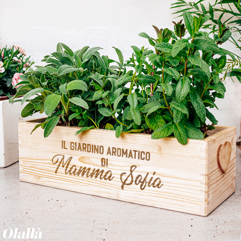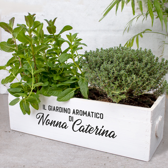 Carinissima fioriera di legno personalizzata con la tua frase speciale. Ideale per ogni donna o uomo amante della cucina, questa cassettina porta erbe aromatiche personalizzata sarà un dono super gradito!