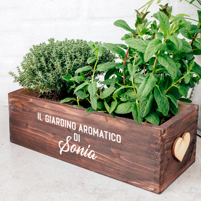 Carinissima fioriera di legno personalizzata con la tua frase speciale. Ideale per la tua amica o collega amante della cucina, questa cassettina porta erbe aromatiche personalizzata sarà un dono super gradito!