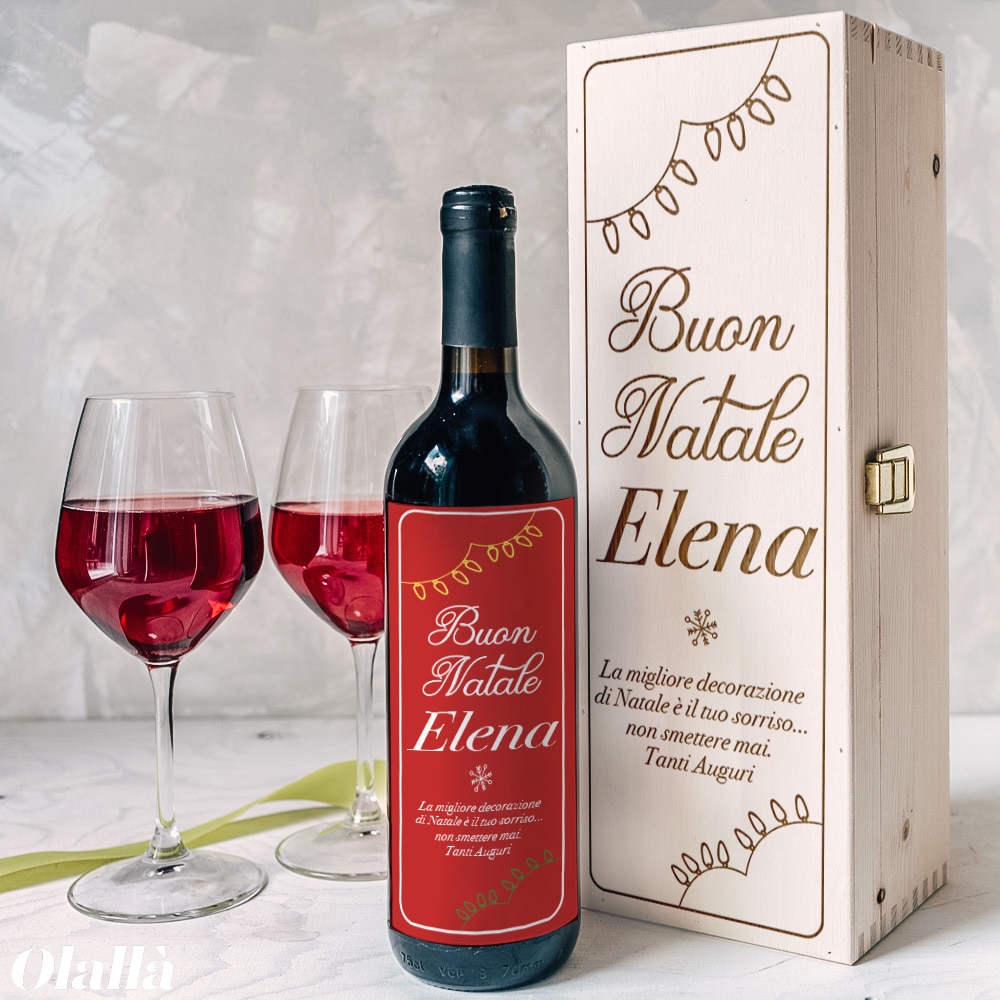 Personalizzate la vostra cassettina seguendo le indicazioni nel menu a tendina. Se lo desiderate è possibile corredarla di una bottiglia di vino o spumante di alta qualità made in Italy e di calici personalizzati in modo da realizzare il regalo perfetto. La bottiglia di vino riporta le stesse informazioni da voi indicate nella personalizzazione della cassettina. Se volete una bottiglia con un’altra grafica o scritta potete acquistarla separatamente ed aggiungerla al carrello assieme alla cassettina. I bicchieri o il bicchiere riporta il nome del festeggiato o dei festeggiati, incisi al laser