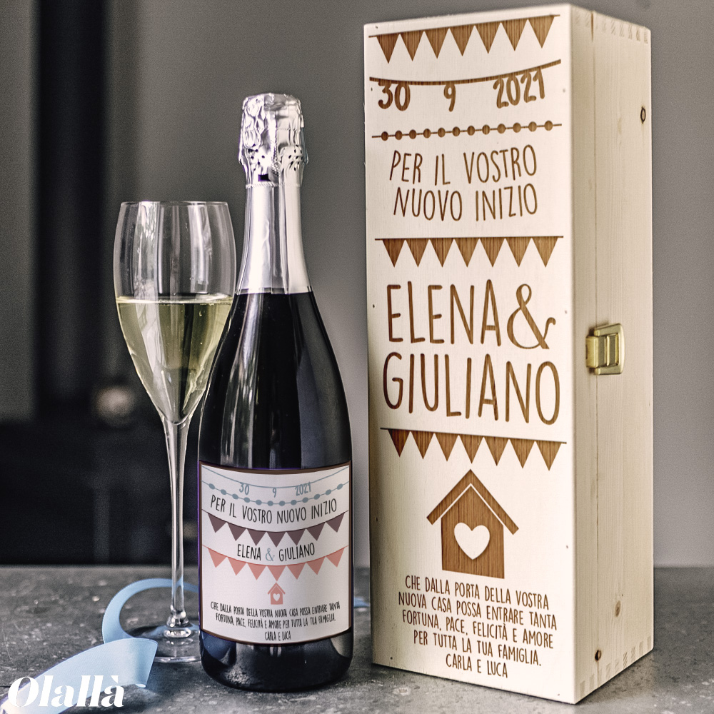 Cassettina Porta Vino in Legno Personalizzata con Festoni – Idea Regalo Casa Nuova