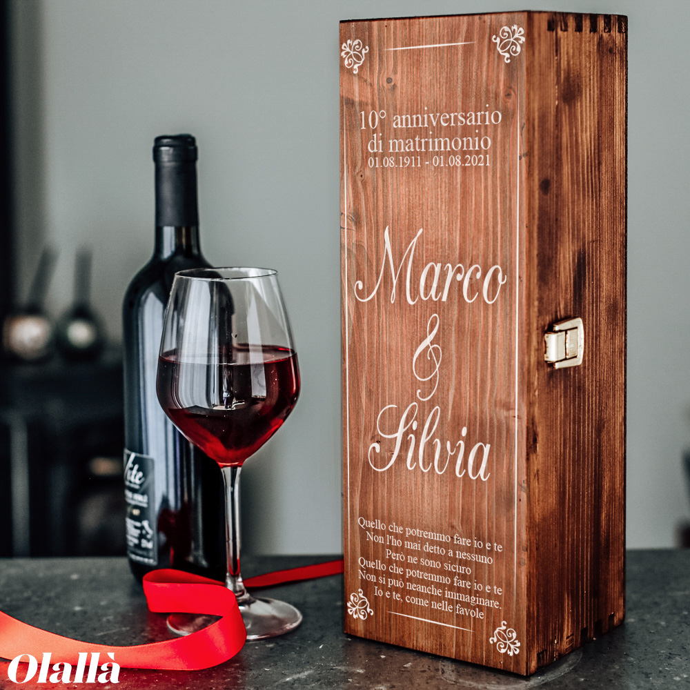 Il coperchio della cassettina viene inciso al laser secondo le indicazioni che vorrete lasciarci in base al disegno mostrato in immagine. Per qualsiasi chiarimento scriveteci a servizioclienti@olalla.it.