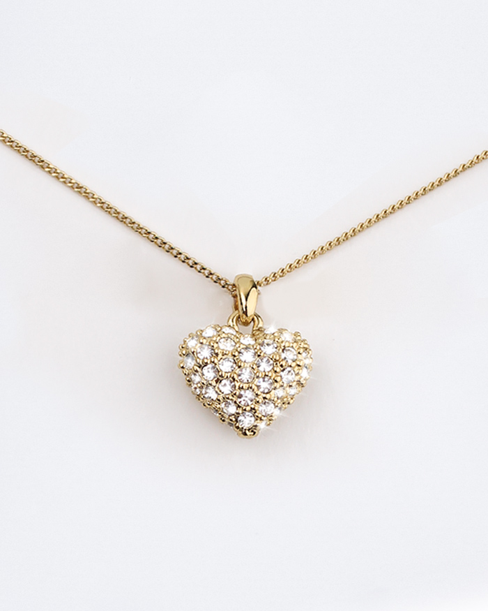 La collana è un gioiello semplice ma d’effetto. Realizzata in ottone placcato in oro, la collana è decorata con cristalli bianchi.