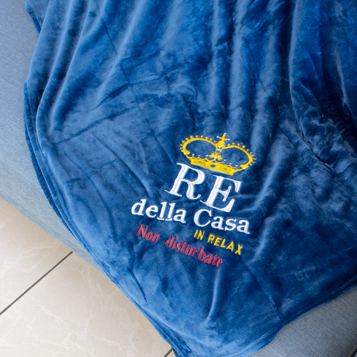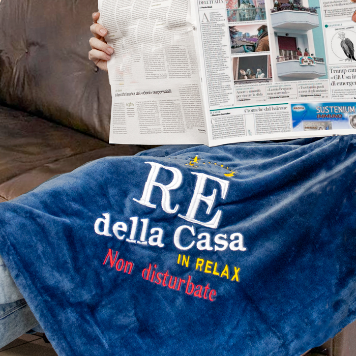 Coperta Plaid Ricamata “Re della Casa in Relax – Non Disturbare” – Idea Regalo Divertente Festa del Papà