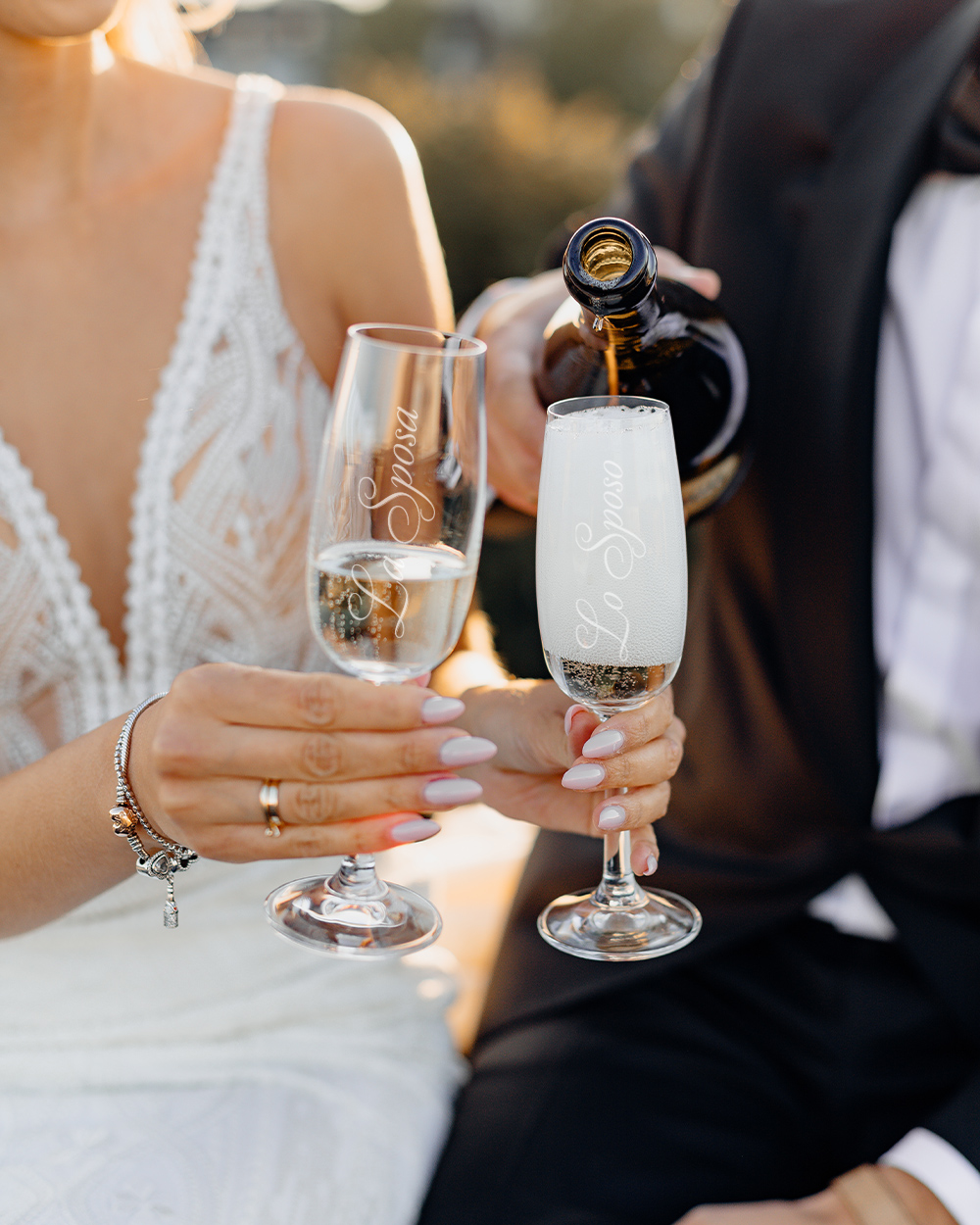 Nel giorno più bello della vostra vita, ogni dettaglio conta per trasformare momenti effimeri in ricordi eterni. Tra questi, spicca la coppia di bicchieri flute da spumante personalizzati con le scritte corsive “La Sposa” e “Lo Sposo”, un’esclusiva che aggiunge un tocco di classe indimenticabile al vostro matrimonio. Questi bicchieri non sono semplici oggetti, ma portatori di significati profondi e simboli di unione e felicità.