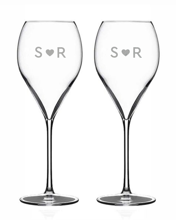 Coppia di calici modello Franciacorta personalizzati con incisione a laser.