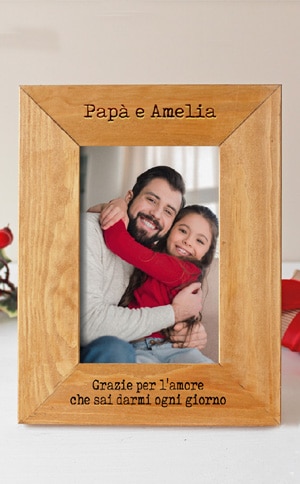Tenera cornice in legno personalizzata con nome e la tua dedica, realizzata artigianalmente in Italia. E’ il regalo artigianale di Natale perfetto per tutti i neo papà!