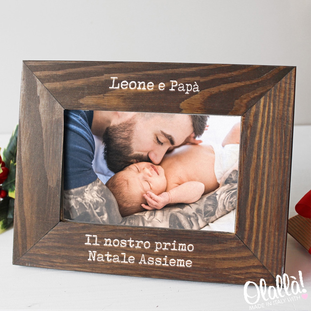Graziosa cornice in legno personalizzata dedicata ai neo papà e al primo Natale dei loro piccoli. Incisa con la frase “Il Nostro Primo Natale Assieme”, è un favoloso regalo per stupire il neo genitore e imprimere per sempre nei ricordi il primo Natale passato insieme al piccolino!