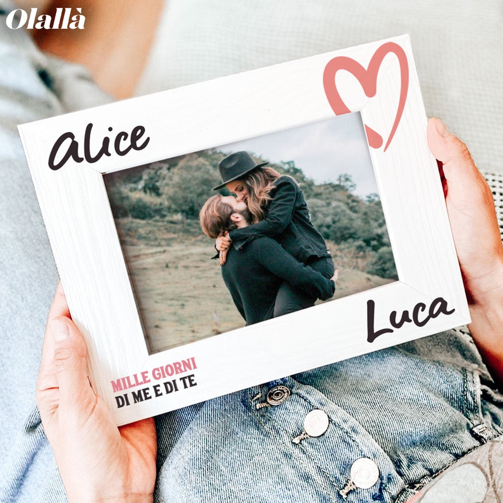 Splendida cornice in legno artigianale che puoi personalizzare con i vostri nomi e le tue parole dal cuore. Ideale come regalo per l’anniversario o San Valentino, un’idea molto romantica e speciale per rendere la foto del tuo cuore davvero indimenticabile.