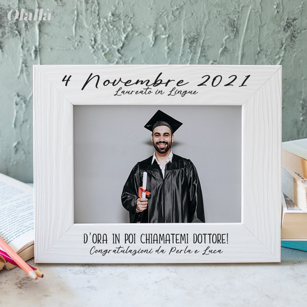 Bellissima cornice in legno personalizzata per la laurea con la data e la tua dedica. Un regalo laurea davvero speciale che emozionerà il festeggiato in uno dei giorni più importanti della sua vita!