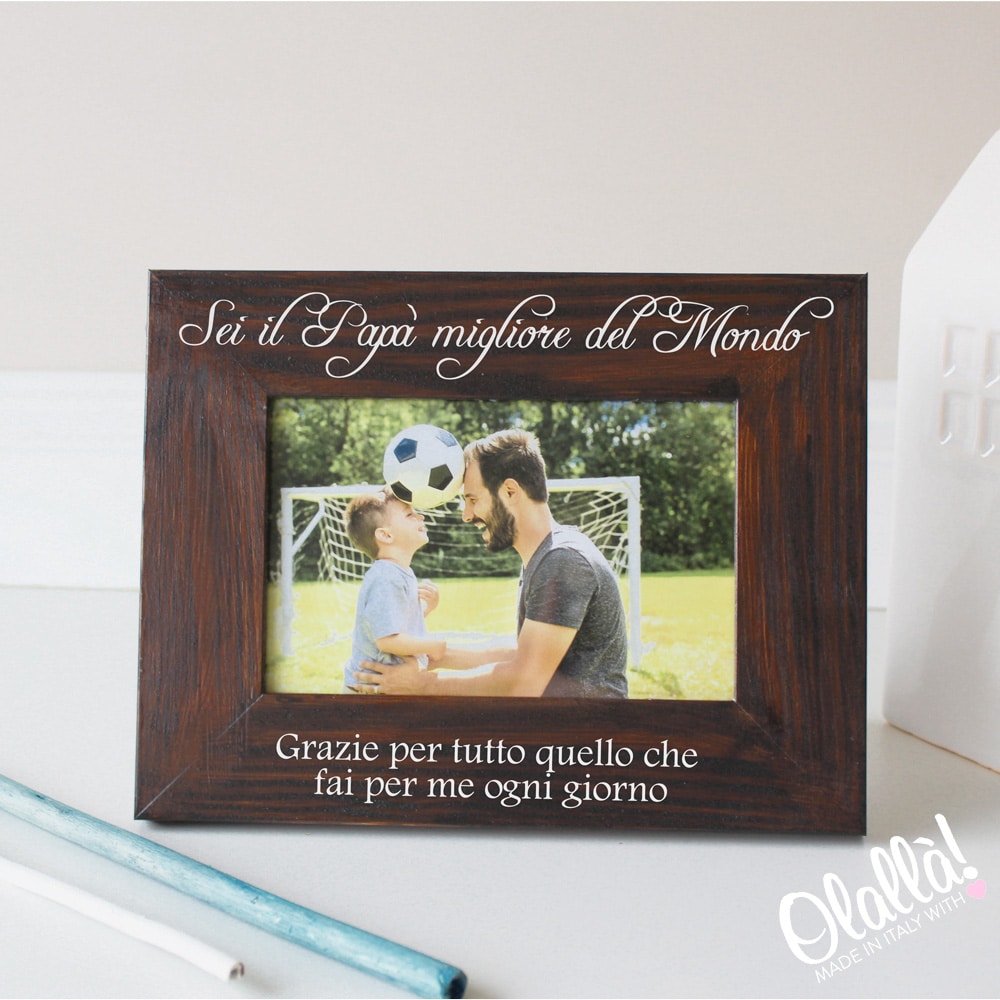 Splendido portafoto in legno personalizzato con le tue frasi, da regalare al migliore papà del mondo! Il regalo perfetto in occasione della Festa del Papà per emozionare vostro marito, compagno o papà. La cornice può essere personalizzata a vostra scelta.