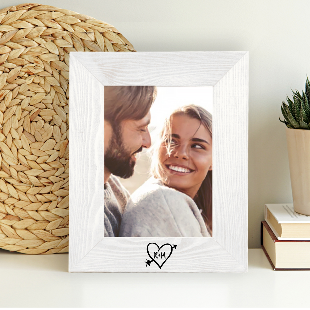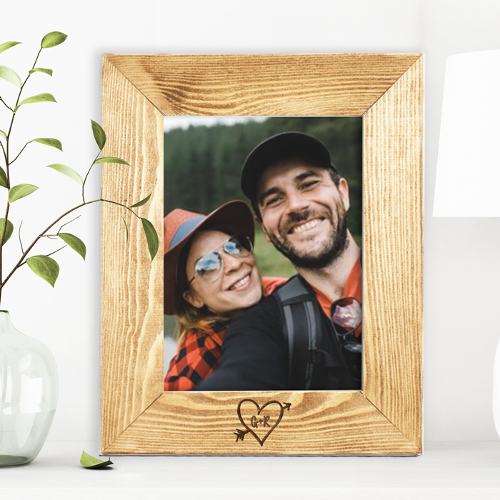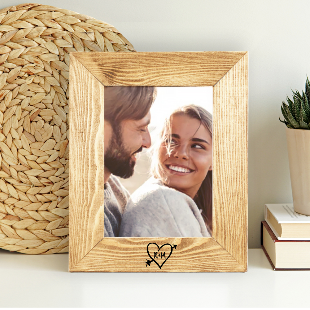 Suggestiva cornice in legno personalizzata con iniziali dentro cuore trafitto. Emoziona il tuo amore con il potere di una foto per voi significativa e questa splendida cornice romantica. Celebra il vostro grande amore con questa cornice personalizzata, una fantastica idea per San Valentino o un anniversario, o qualsiasi altro giorno tu voglia ricordarle/ricordargli quanto la/lo ami.