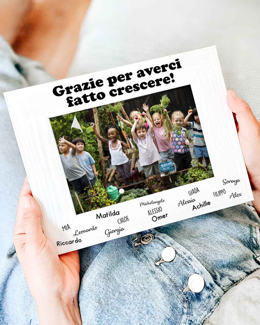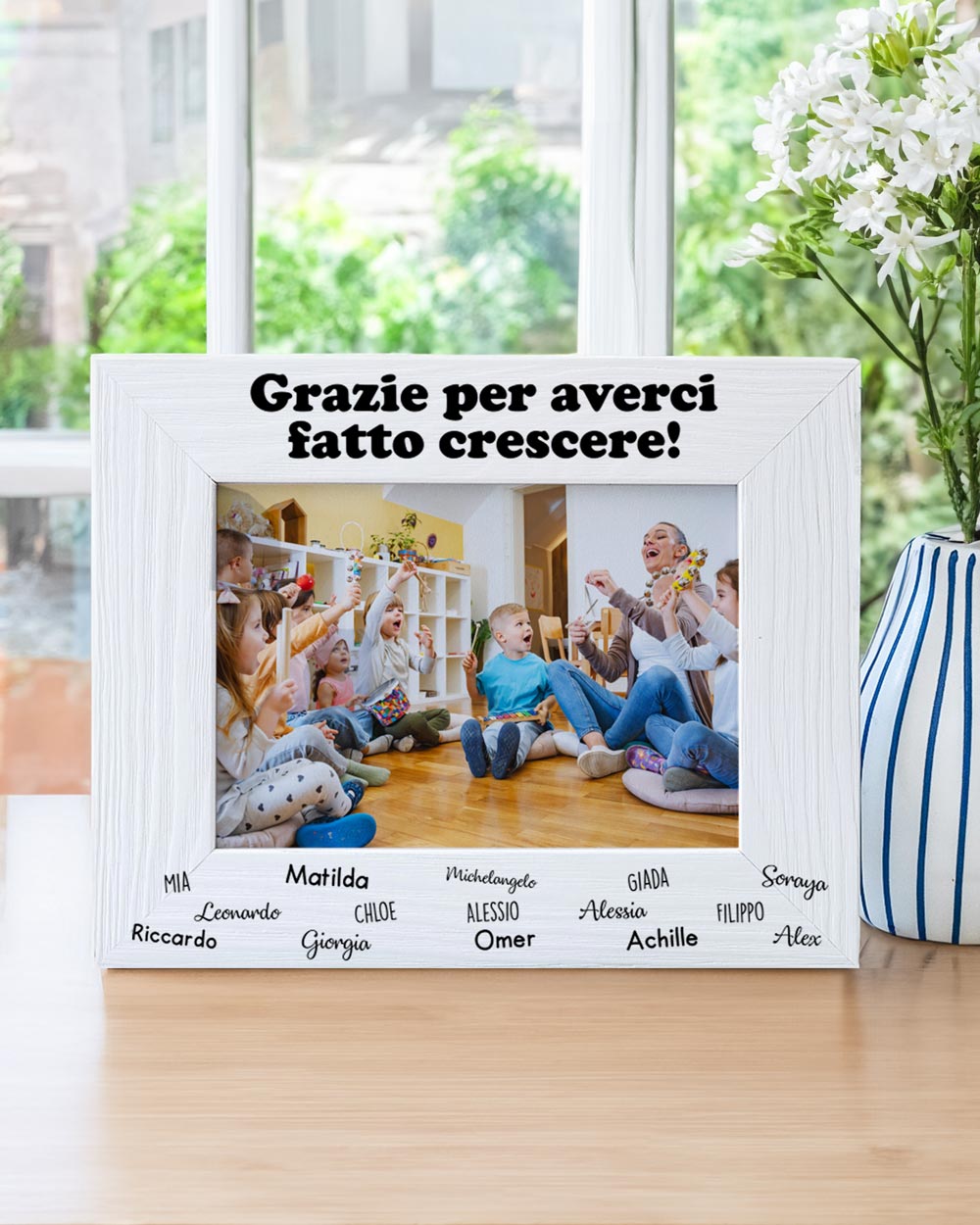 La cornice è ancora più bella dal vivo! Ottimo materiale e bellissima la personalizzazione! La mia classe ha scelto di acquistare da voi i regali di fine anno scolastico per le maestre…. non li abbiamo ancora consegnati, ma certamente piaceranno molto! Ho avuto un piccolo problemino nella personalizzazione, ma è stato risolto tutto con molta professionalità e prontezza. Ho trovato una ditta seria e persone super disponibile e gentile! Per tutti questi motivi metto 5 stelle su tutto! Grazie! Roberta.