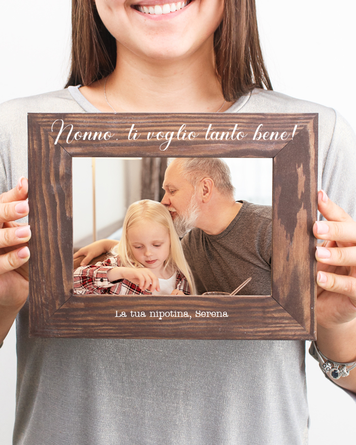 Se anche voi avete la fortuna di avere dei nonni che darebbero tutto per i loro nipoti e che li amano alla follia senza riserva alcuna, allora ricordategli quanto sono importanti per tutti voi, grandi e piccini, figli e nipoti, con questa dolcissima cornice in legno personalizzata. Un’idea regalo apprezzatissima da tutti i nonni d’Italia, che sarà ancora più unica quando l’avrete fatta personalizzare con una dedica particolare e il nome dei vostri nonni.