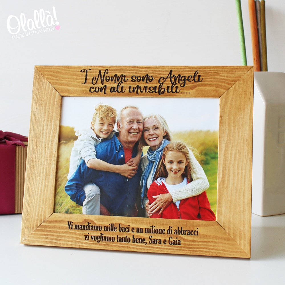 Cornice in Legno Personalizzata I Nonni sono Angeli – Idea Regalo a Distanza