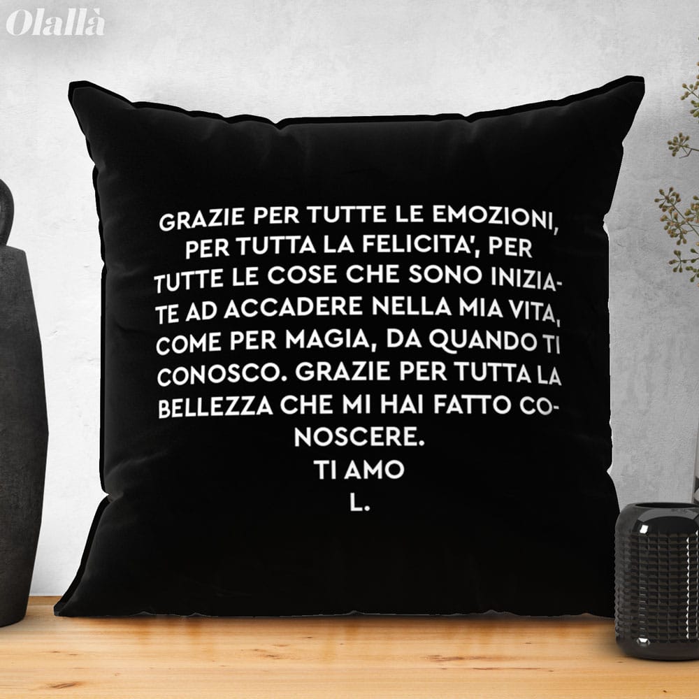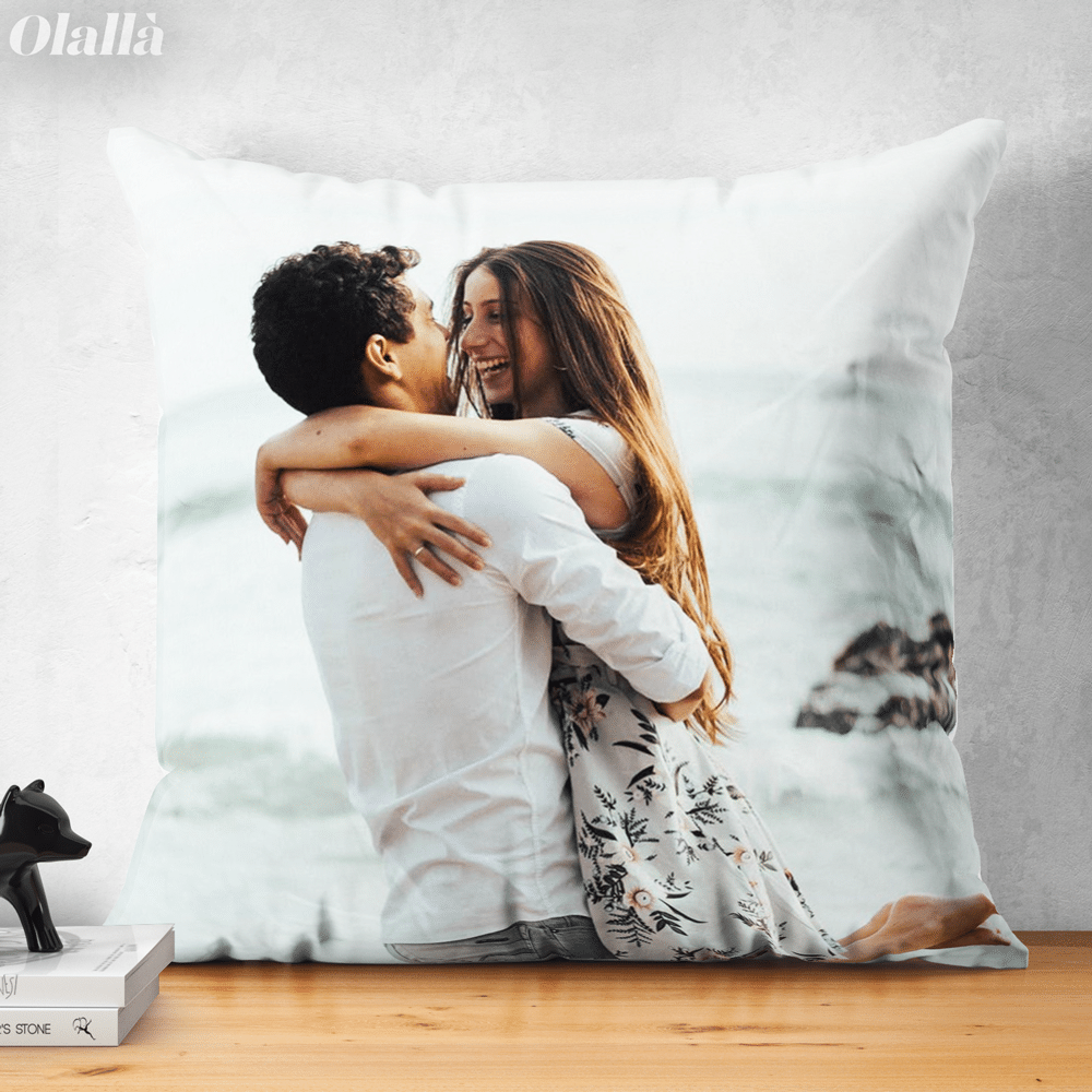 Cuscino con foto del vostro posto del cuore, frase e data personalizzata. Il regalo perfetto per tenere sempre con voi un pezzo della vostra storia d’amore, tutto da stringere e perfetto per far parlare la vostra casa di voi!