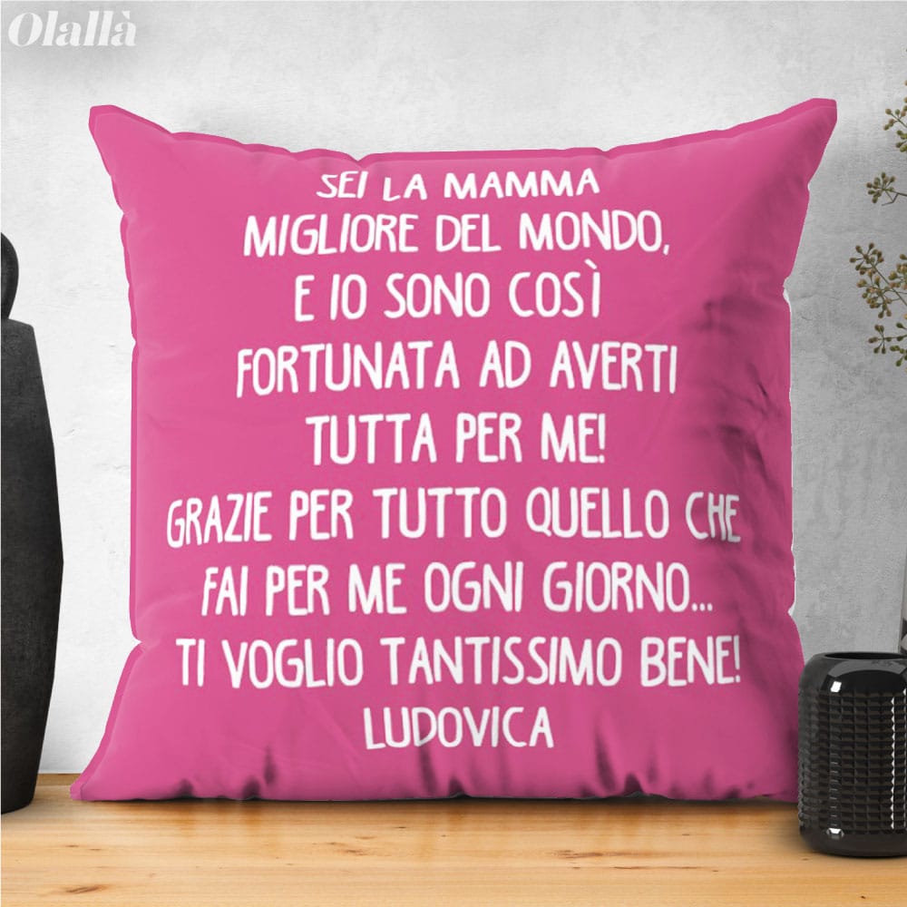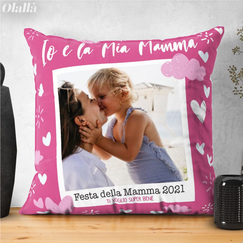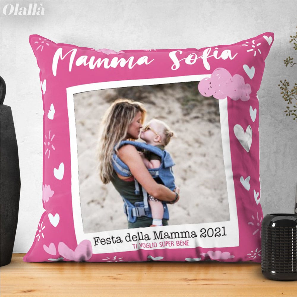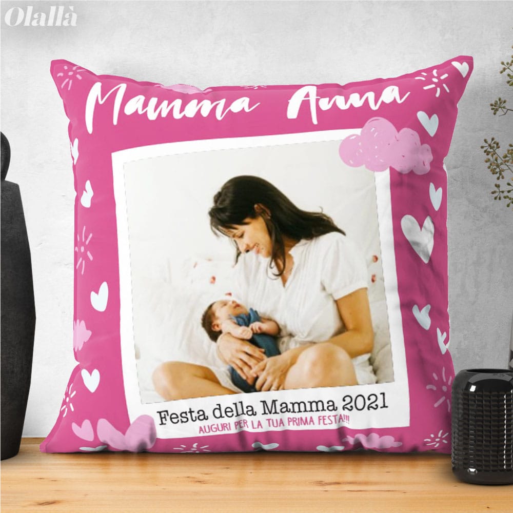 Meraviglioso cuscino con foto effetto polaroid personalizzabile sul fronte e sul retro. Il regalo perfetto per dimostrare tutto il tuo amore alla mamma, nel giorno della sua festa.