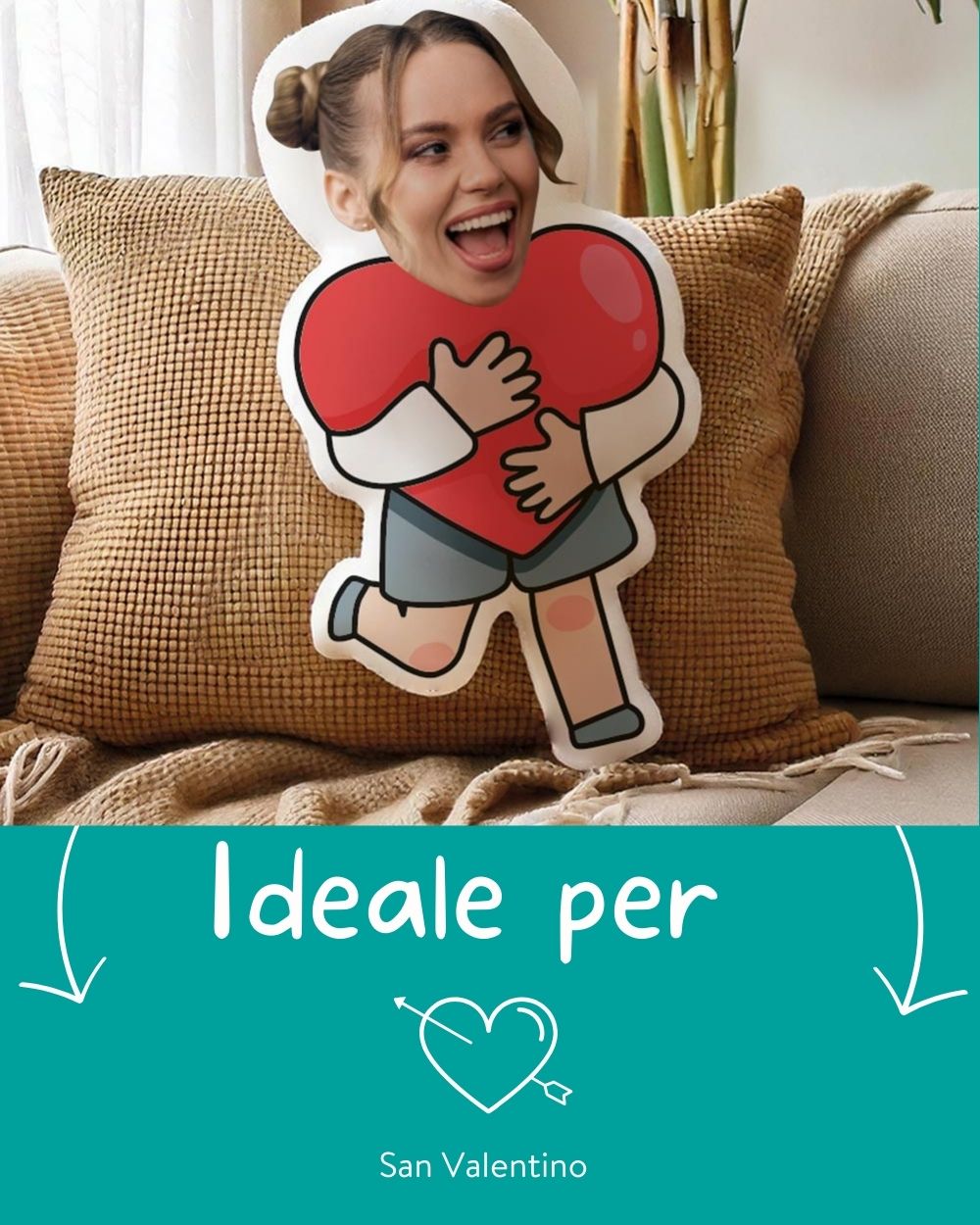 Se stai cercando un regalo che sia al tempo stesso romantico, divertente e incredibilmente originale, il Cuscino Pupazzo Personalizzato con Faccia è la scelta perfetta per questo San Valentino! Questo peluche personalizzato combina la dolcezza di un regalo romantico con l’ironia di un design giocoso, regalando un sorriso a chiunque lo riceva. Ideale per sorprendere il tuo partner, è un’idea regalo unica e memorabile che non passerà inosservata.