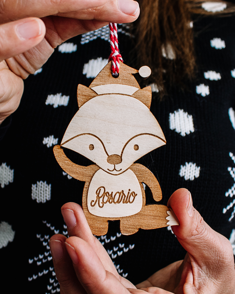 Carinissima decorazione di legno da appendere all’albero di Natale a forma di volpe personalizzabile con il vostro nome! Fantastico regalino di Natale per chiunque vuoi tu. Meraviglioso anche come segnaposto natalizio o come tag da allegare alle tue confezioni regalo di Natale.