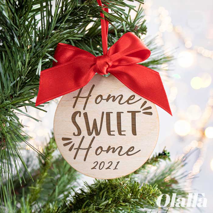 1 recensione per Decorazione di Legno Personalizzabile da Appendere all Albero di Natale ” Casa Dolce Casa”