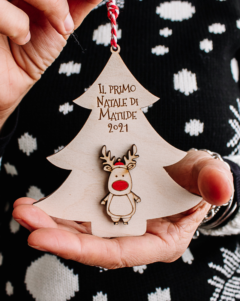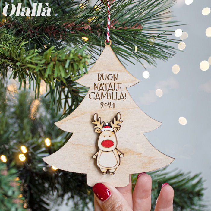 Decorazione di Legno Personalizzata da Appendere all’Albero di Natale – Renna Rudolph ad Albero