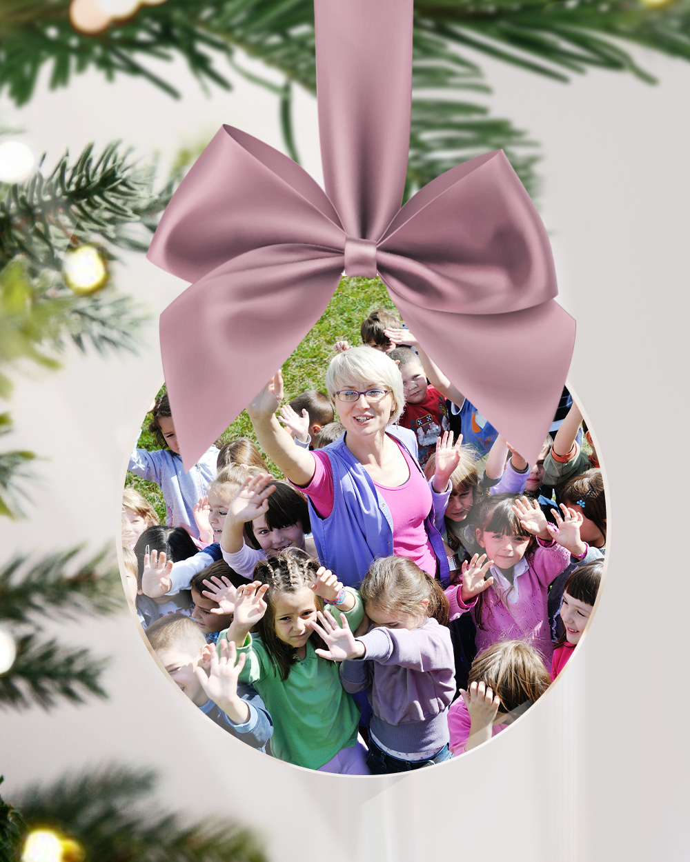 Regala alla tua maestra del cuore uno scatto con i suoi alunni da appendere all’albero di Natale grazie a questa meravigliosa decorazione natalizia personalizzabile con foto. Perfetta per adornare l’abete di casa oppure come chiudi pacco alternativo per il regalo da fare all’insegnante.