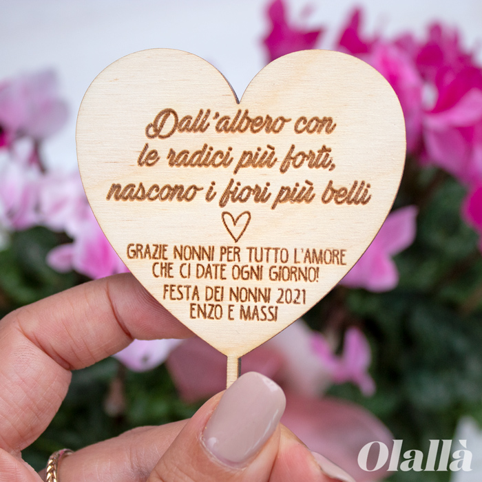 Splendido segna piante decorativo in legno, personalizzabile con una frase a scelta e una dedica speciale. A forma di cuore, è una dolcissima idea regalo per la tua nonna speciale, in occasione della Festa dei Nonni o per il suo compleanno.