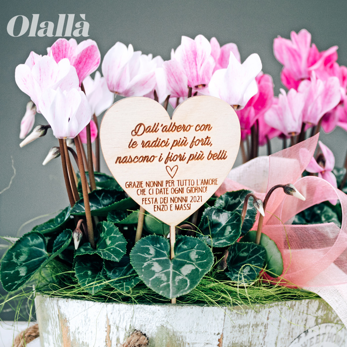 Decorazione per pianta in legno personalizzabile con una frase a scelta che verrà incisa a laser. Un regalo dolcissimo per la tua nonna del cuore.
