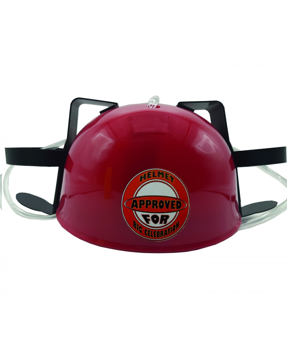 Il caschetto è dotato di due portalattine applicati ai lati e di un tubicino trasparente che funge da cannuccia. L’elmetto, in taglia unica e in materiale plastico con lunga cannuccia in gomma trasparente, è decorato, sulla parte frontale, da una vivace scritta che farà ben capire chi è l’uomo che lo indossa.