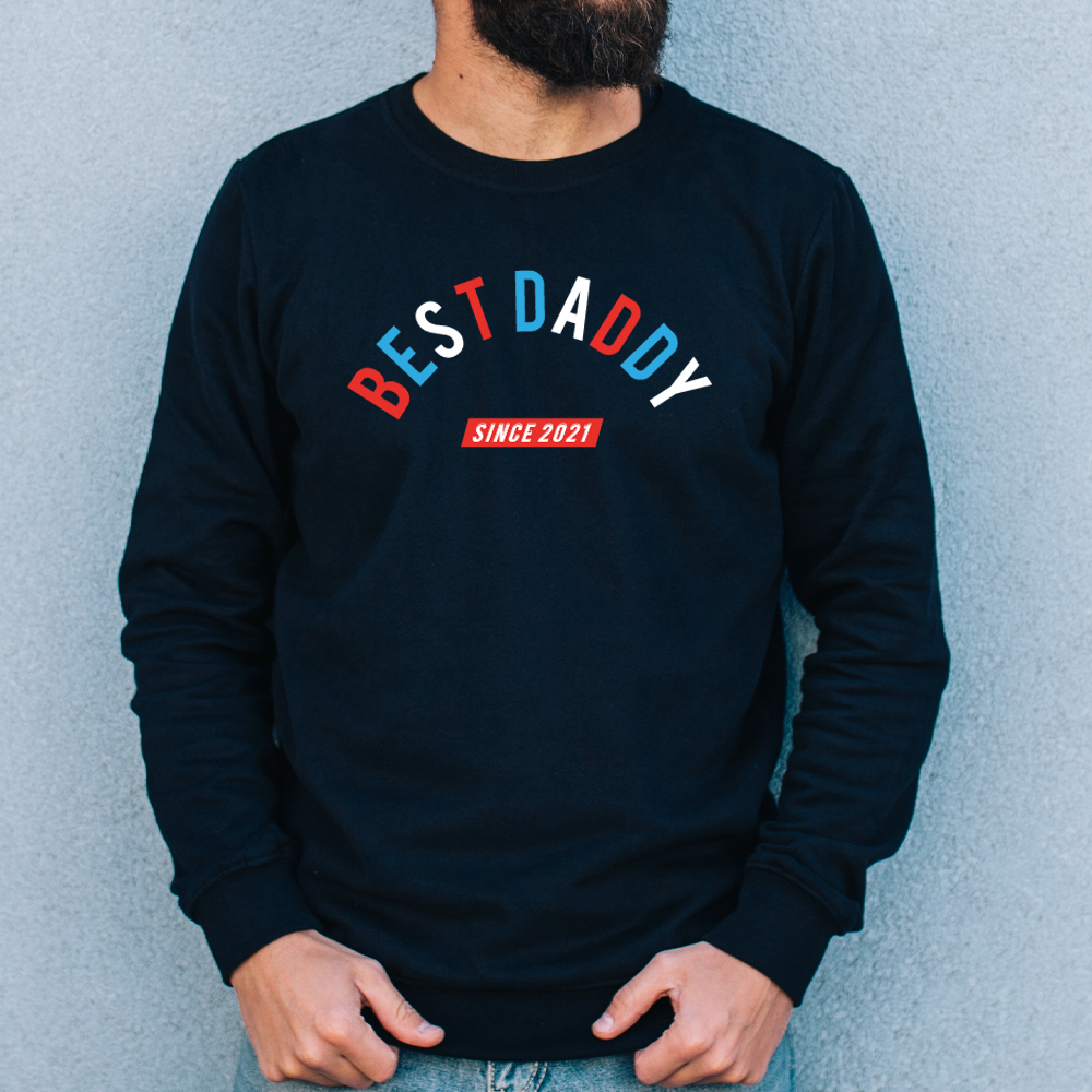 Bellissima Felpa per il Papà, personalizzata con la frase “Best Daddy Since” in stile Vintage. Stupisci il tuo uomo del cuore con questa felpa che lo farà sentire un papà davvero orgoglioso! È possibile personalizzare la felpa con l’anno in cui il tuo lui è diventato papà. La scritta “Best Daddy” rimane fissa.