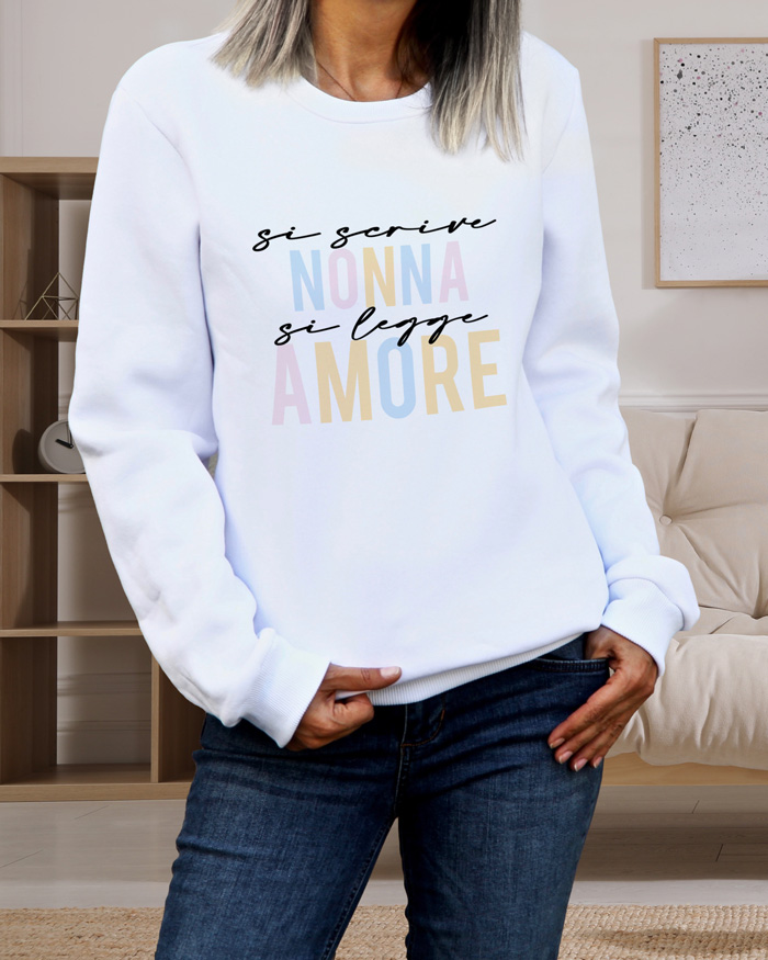 Originalissima Felpa personalizzata per la Nonna. Regala un caldo abbraccio alla tua nonna del cuore in occasione del suo compleanno o della Festa dei Nonni.