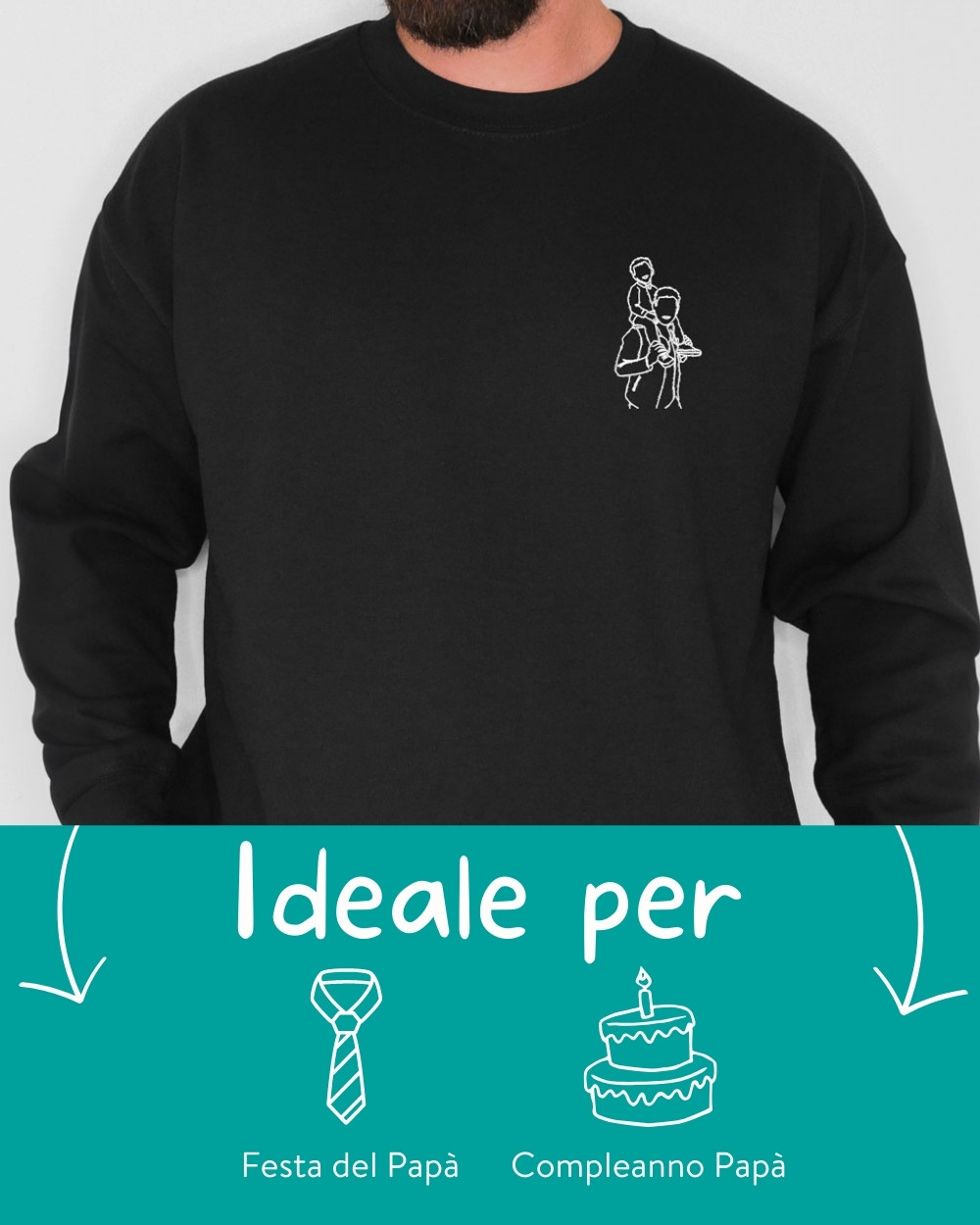 - Un regalo che emoziona e sorprende: Se stai cercando un regalo che lasci il segno, questa felpa è la scelta giusta. Ogni papà resterà senza parole nel ricevere un capo che racconta un momento speciale della sua vita attraverso un’illustrazione minimalista e raffinata.