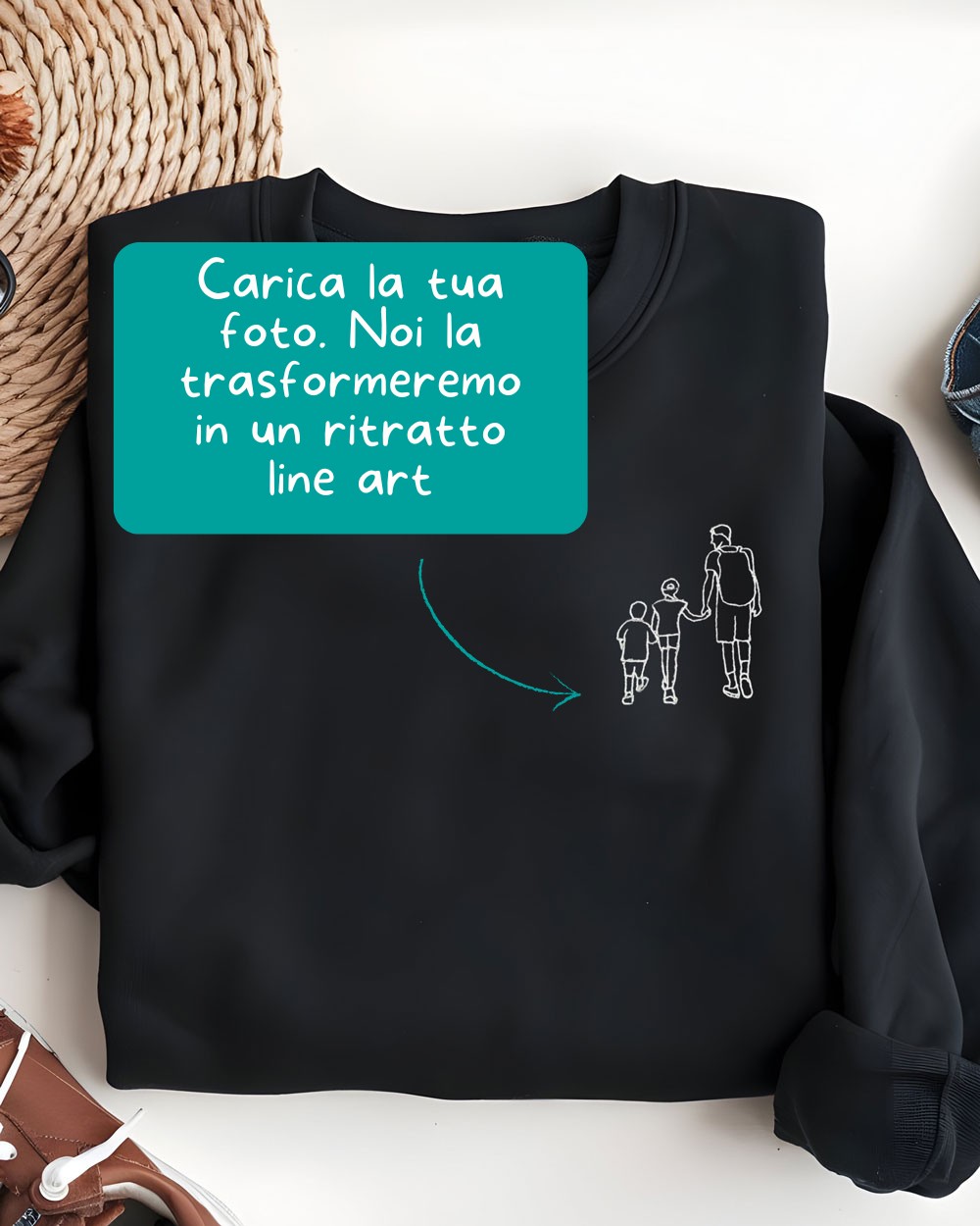 - Personalizzabile con il ritratto line art della tua foto: Semplice ma di grande effetto, il ritratto line art valorizza ogni scatto con uno stile artistico essenziale ed elegante. Il tuo regalo non sarà solo una felpa, ma una rappresentazione unica del vostro legame.