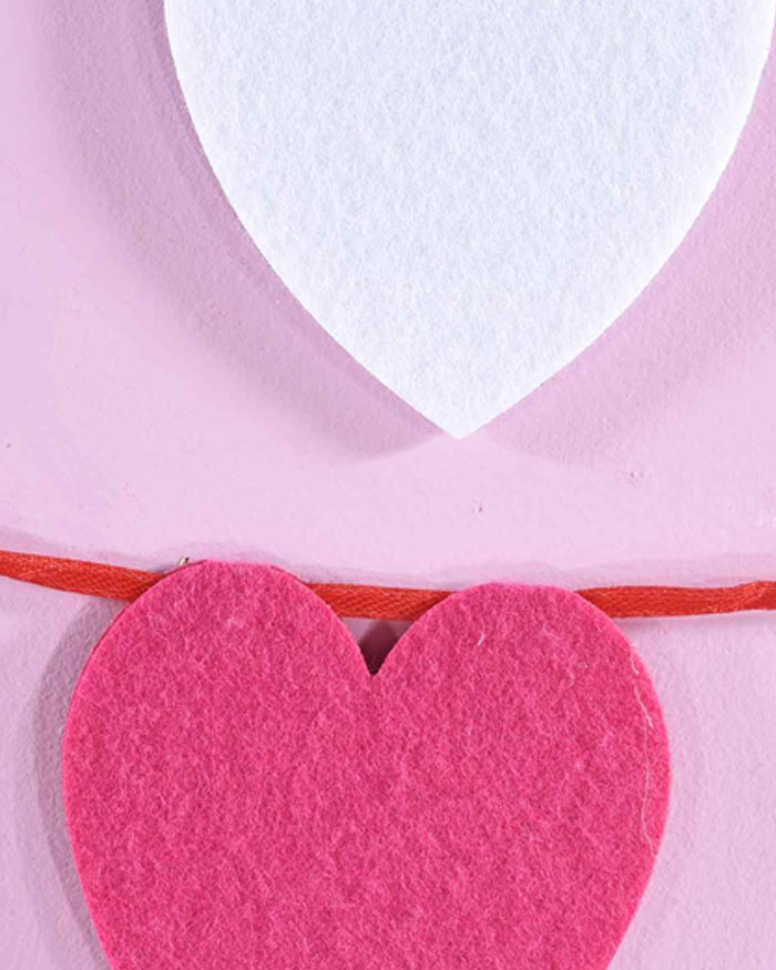 Coloratissimo festone con cuori rosa, rossi e bianchi in panno.