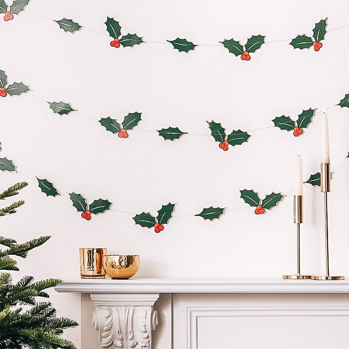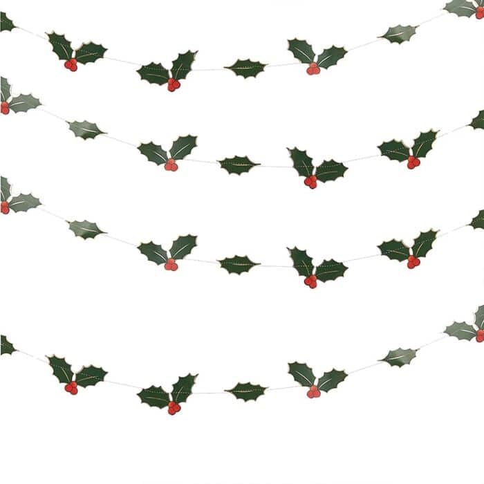 Delizioso festone con foglie di pungitopo e bacche rosse, l’ideale per decorare le scale o le pareti della tua casa durante le festività! Prova a combinarlo con il Festone con Bastoncini di Zucchero per una sovrapposizione inaspettata e dal successo garantito!