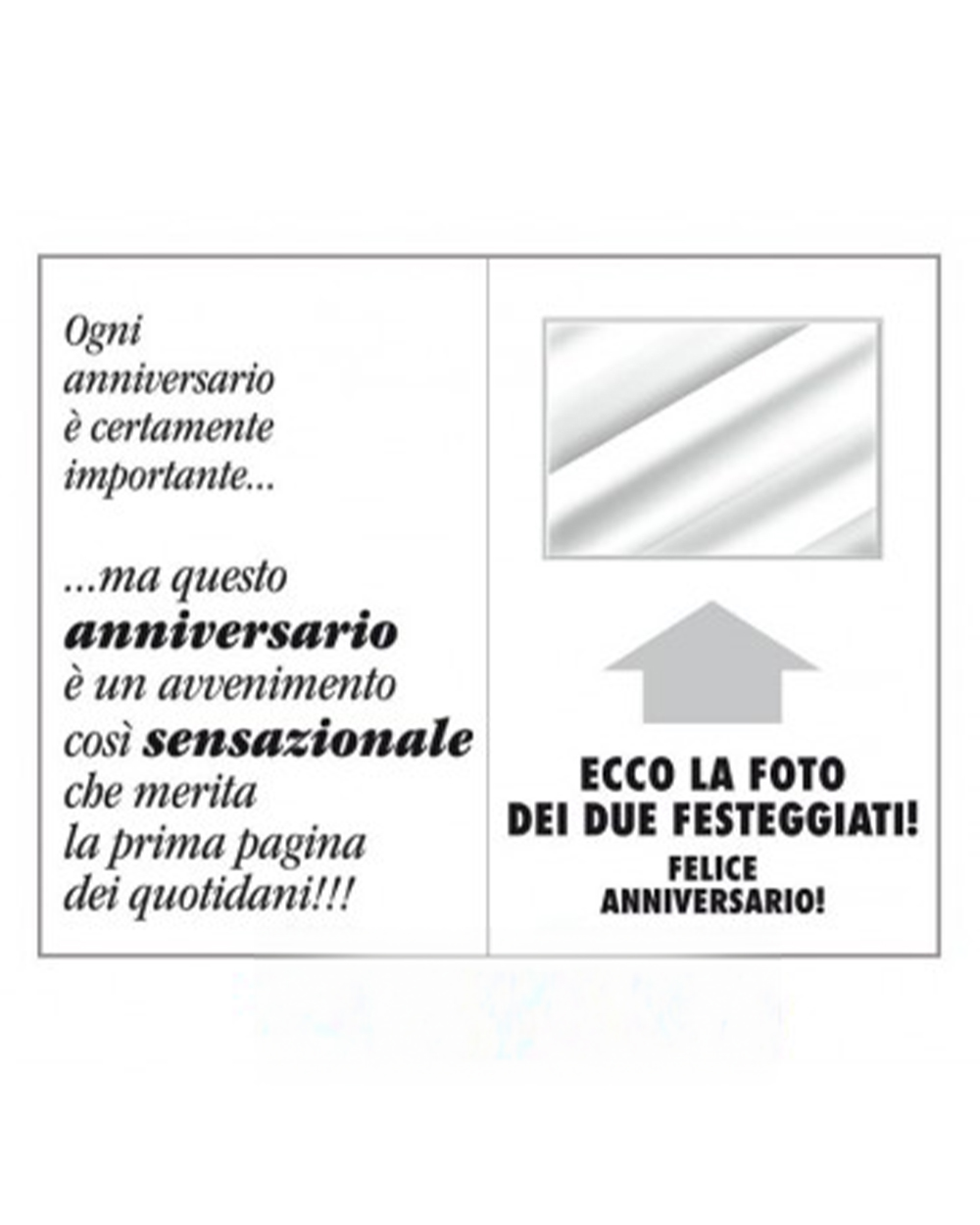 Non perdete l’opportunità di acquistare il nostro unico Giornale di Auguri per l’Anniversario di Matrimonio: con un semplice click, potrà essere presto consegnato direttamente a casa vostra.