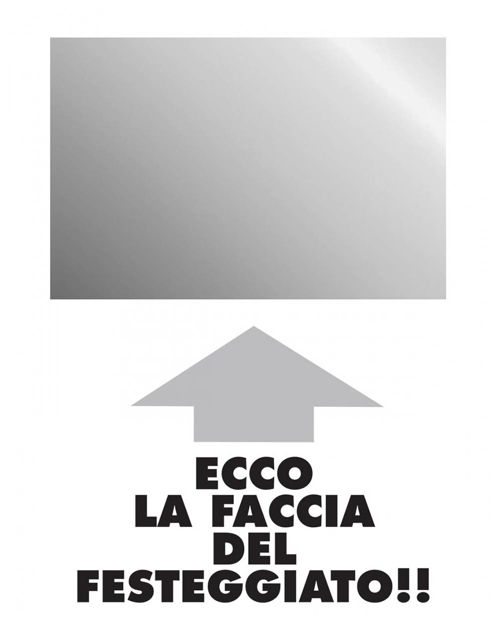 All’interno del biglietto, la sorpresa principale: una carta con un leggero effetto specchio, che aiuta a minimizzare la visibilità delle rughe del tempo, consentendo al festeggiato di ammirare la sua immagine.