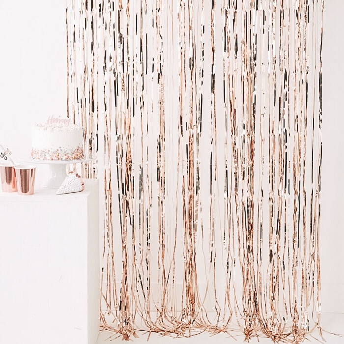 Meraviglioso fondale di striscioline color oro rosa ideale per riempire di splendore una sala in occasione di una festa importante come Natale, Capodanno, Anniversario o compleanno. Usalo per mascherare una parete buia o per fare da sfondo a foto davvero memorabili! Si appende in un baleno e riempie di colore la tua stanza! Ogni confezione contiene un fondale che misura 2,5 metri d’altezza per 100 cm di larghezza.