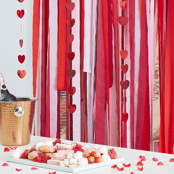 Fantastico Festone a Fondale color Rose Gold, Rosso e Rosa, perfetto per i tuoi photoshooting di San Valentino! Appendilo a una porta o una parete e ricrea un clima romantico e glamour per festeggiare la festa degli innamorati!