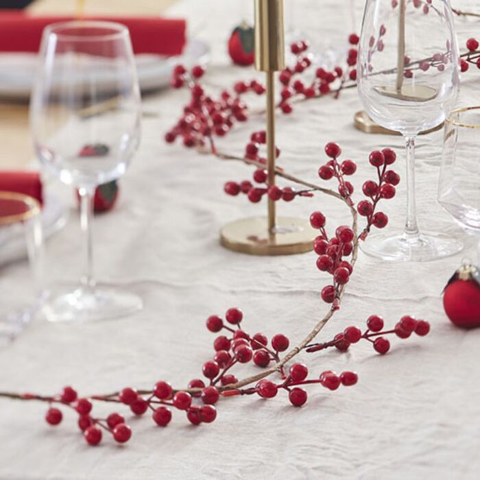 Ghirlanda composta da un rametto di bacche rosse artificiali che misura 1,8 m.