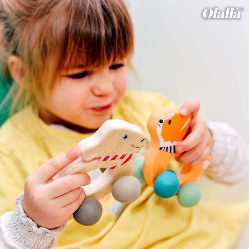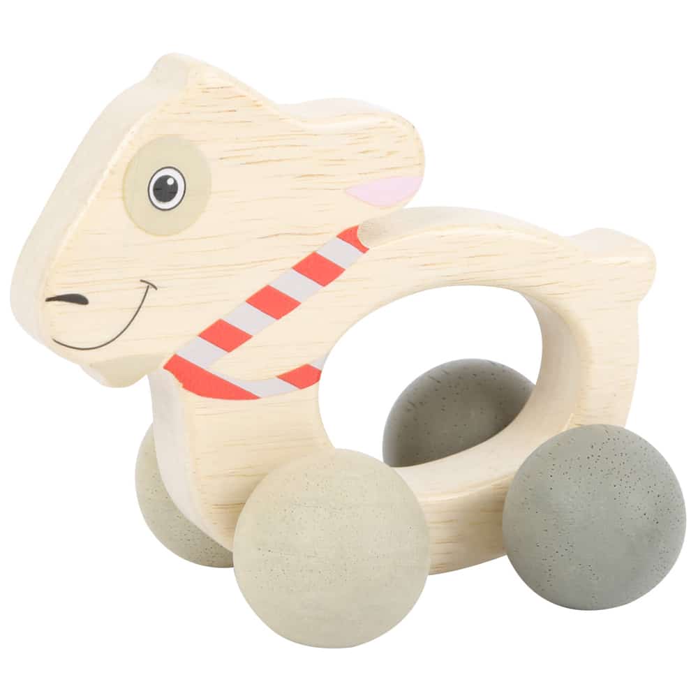 Gioco tattile in legno, lavorato in modo pregiato, comodissimo da impugnare, si può portare in giro sulle sue stabili rotelle! Varie possibilità di divertimento, che aiutano ad esercitare la motricità e promettono azione sul tappetino dei neonati. Il tattile è verniciato a prova di saliva e dunque i bambini lo possono esplorare senza problemi anche con la bocca. Un fantastico gioco per bebè, per piccoli esploratori!