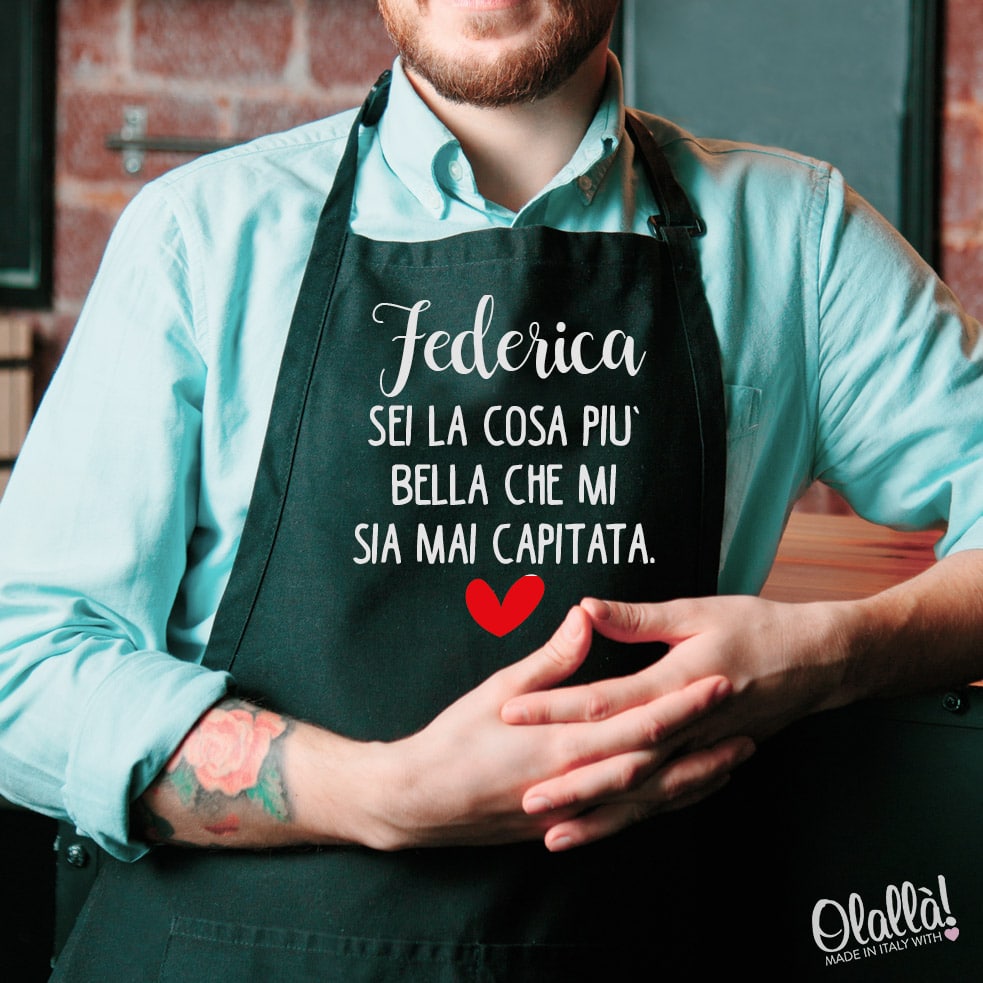 Questo grembiule viene personalizzato con la stampa secondo le vostre indicazioni.