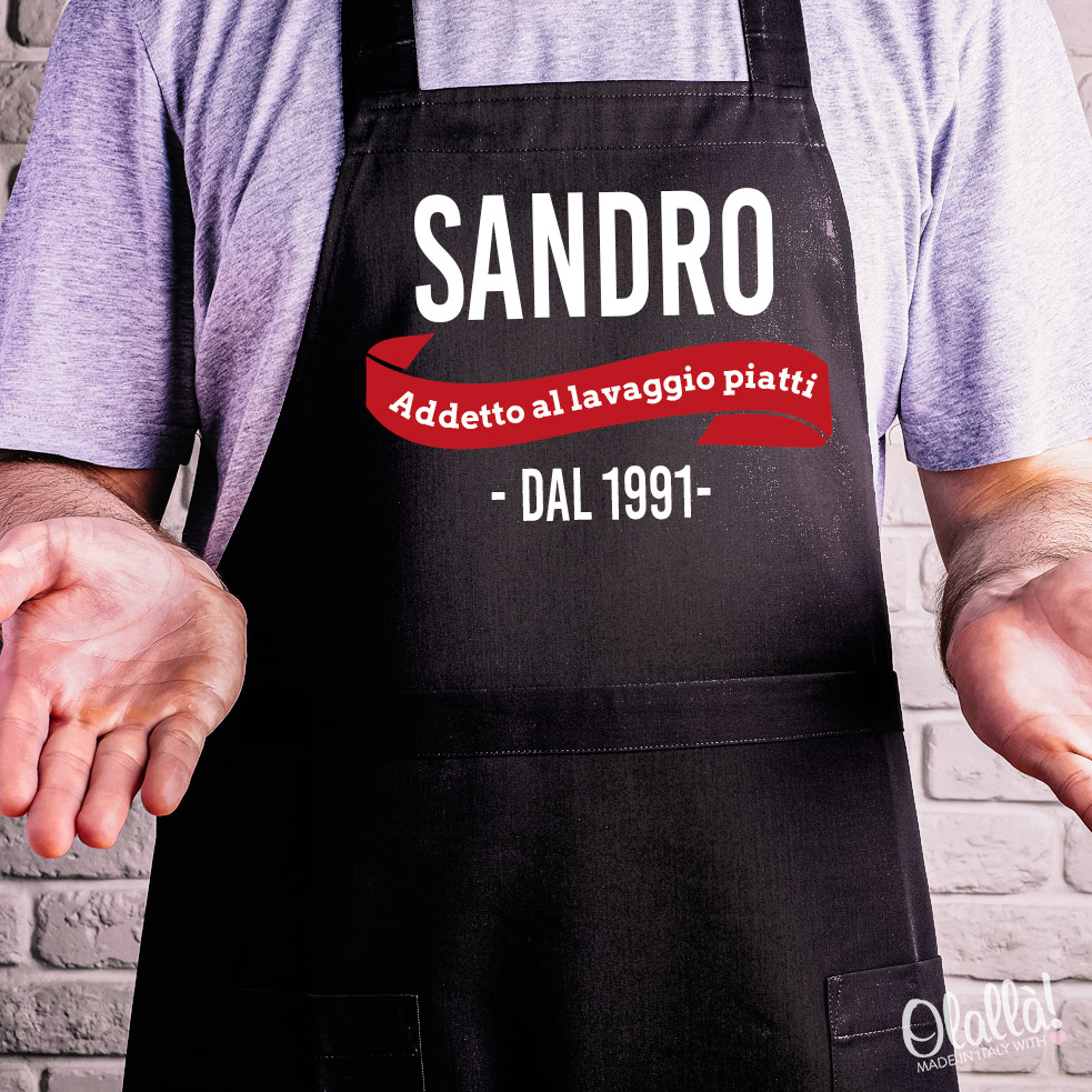 Questo grembiule viene personalizzato con la stampa secondo le vostre indicazioni.