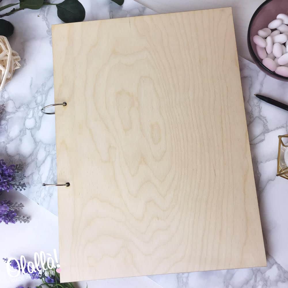Guestbook in legno di betulla personalizzato con incisione e un cuoricino in legno con incisione.