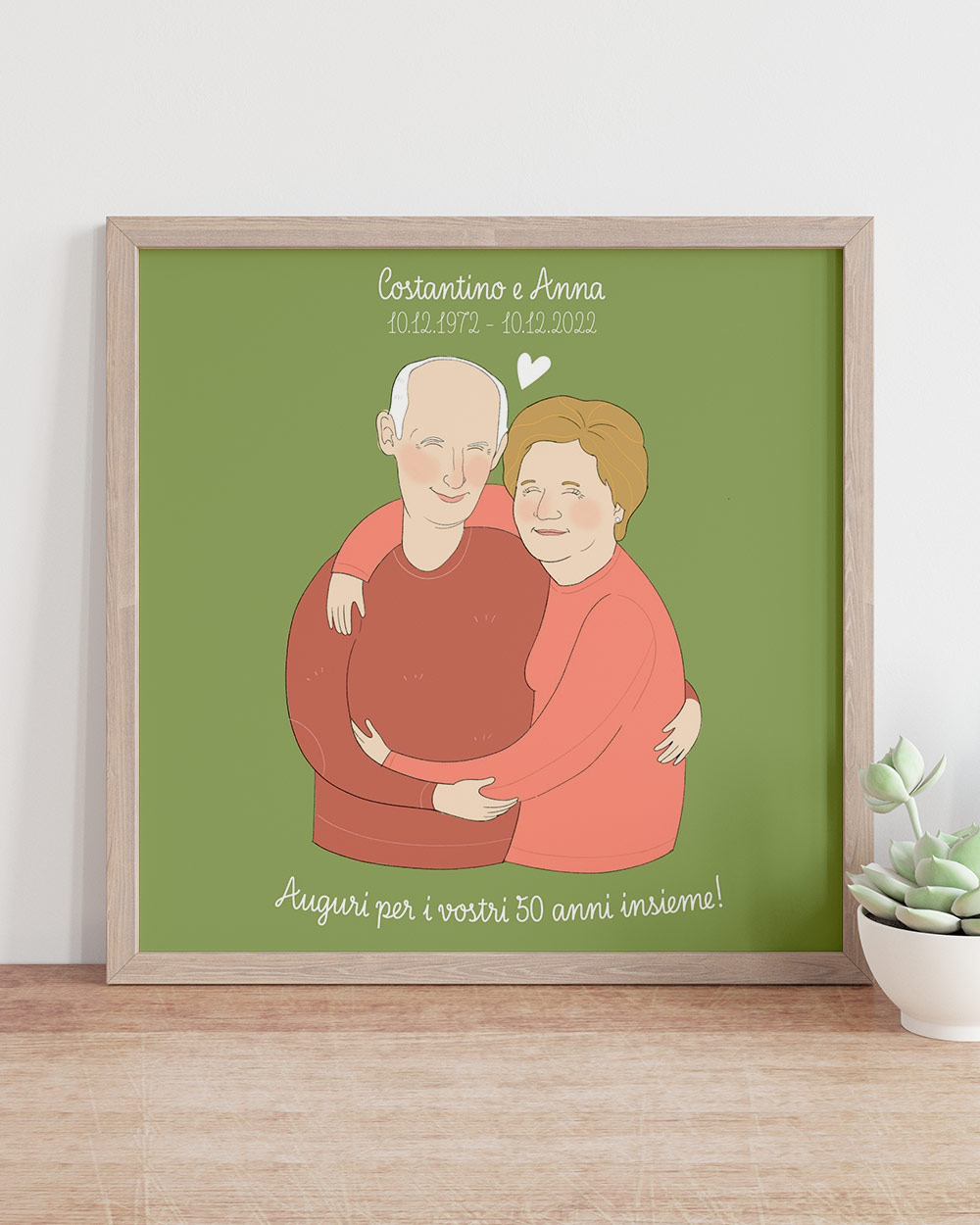 Cinquant’anni insieme è un traguardo che pochi riescono a raggiungere, un viaggio meraviglioso di amore, comprensione e condivisione. Per commemorare questo eccezionale anniversario di matrimonio, un regalo deve essere altrettanto speciale ed emotivamente significativo. La nostra Illustrazione Digitale Ritratto di Coppia Personalizzato con Nomi e Data è più di un semplice regalo, è un tributo all’amore duraturo, una celebrazione dell’unione e un ricordo prezioso che i tuoi nonni potranno ammirare ogni giorno.