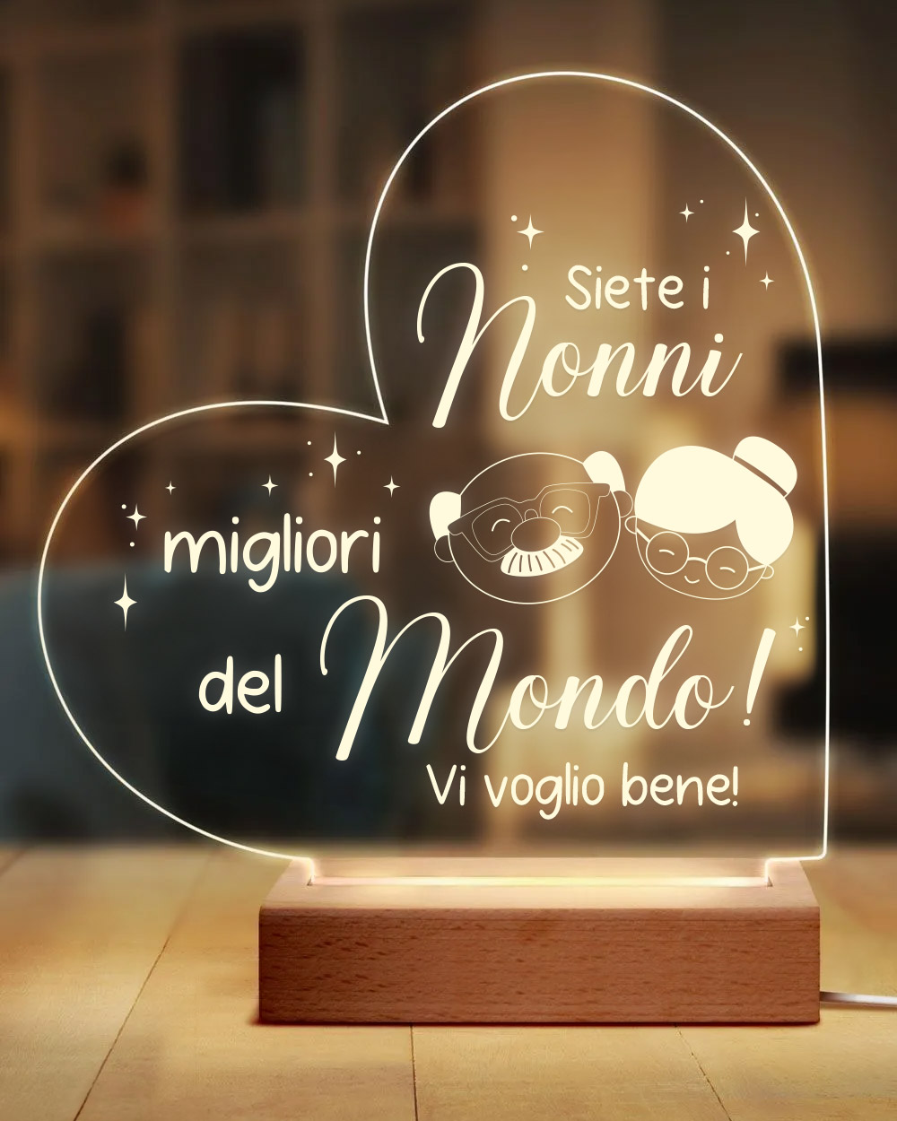 Lampada a Led Placca in Plexiglass a Cuore Personalizzata “Siete i Nonni Migliori del Mondo!” – Idea Regalo per i Nonni